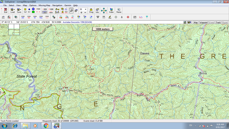 ![]() The most preferred GPS tool in these events is Oziexplorer. It can be ran on a laptop with GPS dongle or on a GPS enabled Android / Windows tablet. The program allows you to load any map (whether digital or scanned from paper) indicate your current position with heading, speed and altitude. All paper maps used in our events will have a digital version available. Oziexplorer also allows you to log a breadcrumb trail, create and project waypoints, calculate distances and measure bearings. It is the easiest tool for you to know exactly where you are in reference to the paper maps provided. It can also take a lot of the headaches out of some of the more complex navigation questions. |